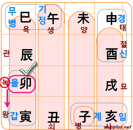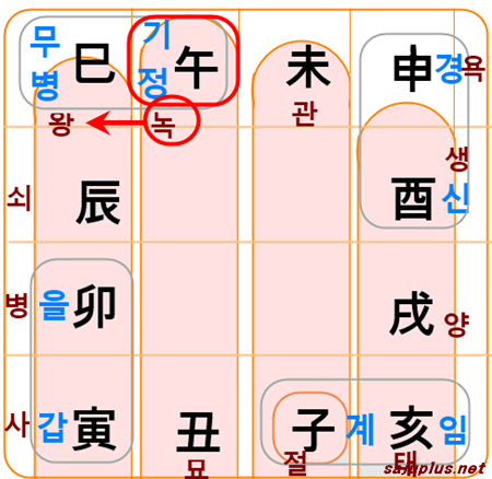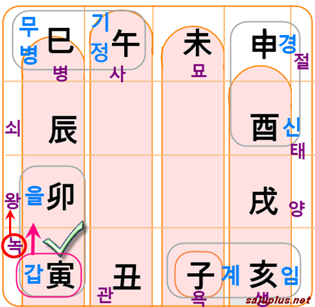 | 을 | 오 | 사 | 진 | 묘 | 인 | 축 | 자 | 해 | 술 | 유 | 신 | 미 |